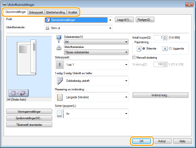 Angi utskriftsinnstillingene etter behov, og klikk på [OK].