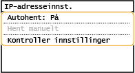 Velg <Av>. Hvis du velger <DHCP> når disse tjenestene er utilgjengelige, vil maskinen sløse tid og kommunikasjonsressurser ved å søke etter disse tjenestene på nettverket.