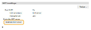 Du kan vise kommunikasjonsstatusen for den registrerte serveren ved å klikke på [Innstillinger/lagring]  [Nettverksinnstillinger]  [TCP/IP-innstillinger]  [Kontroller NTP-server] i [SNTP-innstillinger]. Hvis en ordentlig tilkobling er opprettet, vises resultatet som vist nedenfor. Legg merke til at denne operasjonen ikke justerer systemklokken.