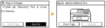 ) for å vise enkle løsninger. Hvis det er vanskelig å forstå prosedyrene på skjermen, kan du se delene nedenfor for å fjerne papirstopp.