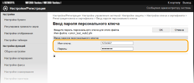[Настройки ключа и сертификата] или [Настройки сертификата CA].