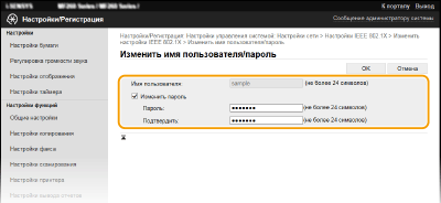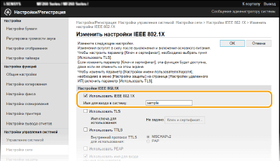 Установите флажок [Использовать IEEE 802.1X] и введите регистрационное имя пользователя в текстовом поле [Имя для входа в систему].