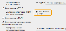 Настройки должны быть почти такие же, как и для TTLS. MSCHAPv2 используется в качестве внутреннего протокола. Прежде чем выбирать данный метод проверки подлинности, включите TLS для Удаленного ИП (