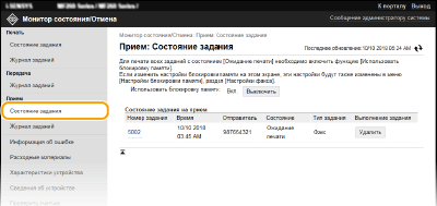 [Состояние задания] в разделе [Прием]