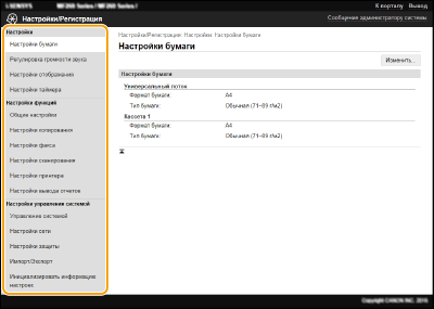 С помощью Удаленного ИП можно изменять различные настройки аппарата. Большинство параметров можно также и на самом аппарате, однако существует ряд параметров, которые можно настроить только с помощью Удаленного ИП. В этом разделе описывается базовая процедура изменения параметров аппарата с помощью Удаленного ИП.