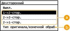 Тип копирования <Двусторонний> может быть недоступен для некоторых форматом и типов бумаги. Доступная бумага