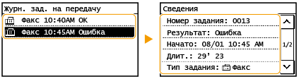 Если для параметра <Отображение журнала заданий> задано значение <Выкл.>, проверка журналов связи недоступна. <Отображение журнала заданий>