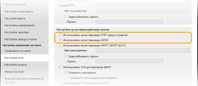 Чтобы использовать POP3-сервер для проверки подлинности перед отправкой электронной почты или интернет-факсов, установите флажок.