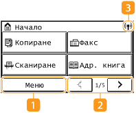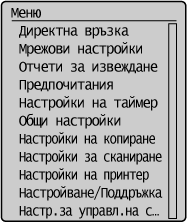 , се показва екранът <Меню>. На този екран можете да започнете с посочването на общите настройки на машината, като например <Предпочитания> или <Настройки на таймер>, както и много от настройките за всяка функция, като копиране и сканиране.