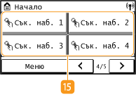 <Сък. наб. 1> до <Сък. наб. 4>Ако запаметите дестинации предварително като номера за съкратено набиране, те могат да се показват бързо. Запаметяване на няколко дестинации като група