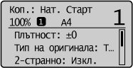 (COPY/SCAN), основният екран за избраната функция се показва. Основният екран за копиране се показва отдолу като пример.