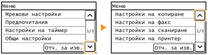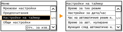 Можете да промените екрана, който се показва автоматично, когато устройството не се използва за определен период от време: <Функция след автоматично нулиране>