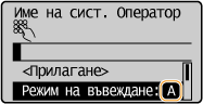 или изберете <Символ> и натиснете когато типът на въвеждания символ е <A> или <a> за показване на екран за избор на символи. Използвайте бутоните / / / , за да изберете символа, който искате да въведете, след което натиснете . |