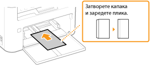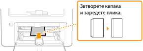 Зареждайте пликовете така, че краят с капака да е насочен към лявата страна, както е показано на илюстрацията.
