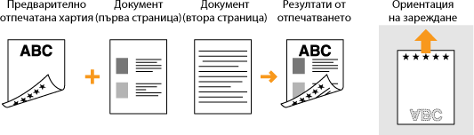 Този раздел описва главно как да зареждате предварително отпечатана хартия с правилна ориентация. За описание на общата процедура за зареждане на хартия в касетата вж. Зареждане на хартия в касетата или Зареждане на хартия в многофункционалната тава.