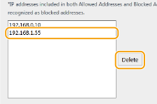 Seleccioneu una adreça IP i feu clic a [Delete].