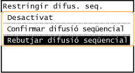 Podeu prohibir una funció que enviï alhora un fax a diverses destinacions (difusió seqüencial).