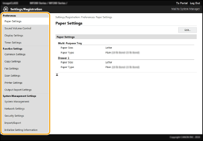 Podeu canviar les diverses opcions de l'equip des de Remote UI (IU remot). La majoria de les opcions també es poden establir a l'equip, però n'hi ha algunes que només poden definir-se mitjançant Remote UI (IU remot). En aquesta secció es descriu el flux bàsic per canviar les opcions de l'equip mitjançant Remote UI (IU remot).