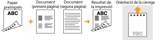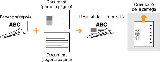 En aquesta secció es descriu com carregar paper preimprès amb la col·locació i orientació correctes. Per obtenir una descripció del procediment general per carregar paper al calaix, consulteu Càrrega de paper al calaix o Càrrega de paper a la safata multiús.