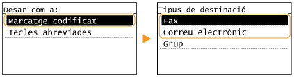 En funció del tipus d'adreça que vulgueu registrar, seleccioneu <Fax> o <Correu electrònic>.