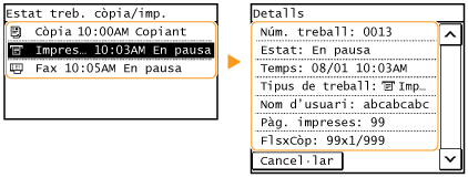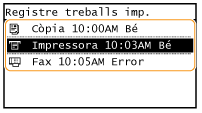 Si <Mostrar registre de treballs> està establert en <Desactivat>, no podeu comprovar els registres d'impressió. <Mostrar registre de treballs>