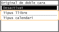 Seleccioneu <Tipus llibre> o <Tipus calendari>