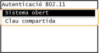 Quan es connecta a una xarxa LAN sense fil, l'equip produeix un error d'autenticació si l'autenticació de clau compartida s'estableix a l'encaminador sense fil. Si això passa, l'equip canvia automàticament l'opció a <Clau compartida> i recupera la connexió.