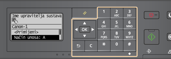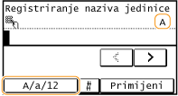 da biste promijenili vrstu znaka za unos. Trenutačno odabrana vrsta znaka označena je simbolom „A“, „a“ ili „12“ pod stavkom <Entry Mode>.