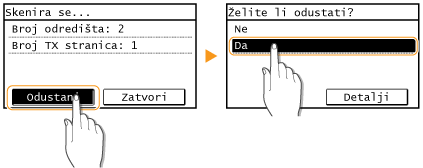 Originali su skenirani i čekaju obradu. Odaberite dokument koji želite otkazati, a zatim <Da>.