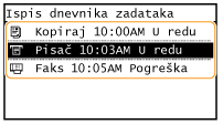 Ako je mogućnost <Prikaz dnevnika zadataka> postavljena na <Isključeno>, dnevnike o ispisu nije moguće provjeriti. <Prikaz dnevnika zadataka>
