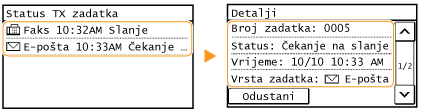 Ako je dokument uspješno poslan, prikazat će se <U redu>, a ako se dokument nije uspio poslati zbog otkazivanja ili zbog neke pogreške, prikazat će se <Pogreška>.