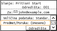 Prilikom prilaganja skeniranih originala poruci e-pošte prije slanja je moguće definirati predmet, poruku, adresu za odgovor i prioritet e-pošte.