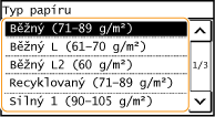 Pokud se velikost vloženého papíru nenachází mezi zobrazenými možnostmi, vyberte možnost <Jiné velik.>.