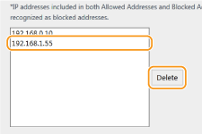 Válasszon egy IP-címet, majd kattintson a [Törlés] gombra.
