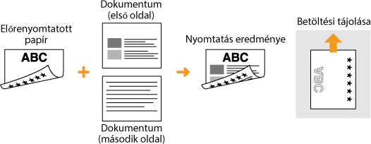 A <Papíradagolási mód váltása> beállításHa felváltva nyomtat egy- és kétoldalasan az előnyomott papírokra, akkor minden váltáskor módosítania kell a nyomtatandó oldalt. Ha viszont a <Papíradagolási mód váltása> beállítás a <Sebesség prioritása> értékre van állítva, akkor a kétoldalas nyomtatásnál a fejléces papír behelyezésekor alkalmazott helyzet használható egyoldalas nyomtatáshoz is. Ez a beállítás különösen hasznos, ha gyakran kell egy- és kétoldalas nyomatot is készítenie. <Papíradagolási mód váltása>
