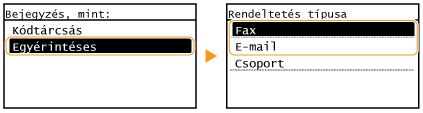 A bejegyezni kívánt cím típusától függően válassza a <Fax> vagy <E-mail> lehetőséget.