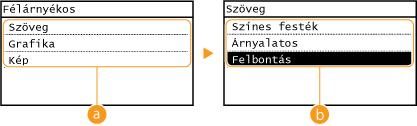 A beállítások prioritásaHa egy nyomtatási beállítás a nyomtató-illesztőprogramban és a készülék kezelőpanelén is meg van adva, akkor az illesztőprogramban megadott beállítás felülírja a kezelőpanel beállítását. A kezelőpanel beállításai csak bizonyos speciális esetekben lesznek érvényesek, például amikor UNIX vagy más olyan operációs rendszerről végez nyomtatást, amelyekhez a készüléknek nincs illesztőprogramja.
