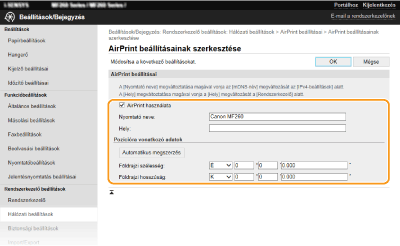 [AirPrint beállításai]