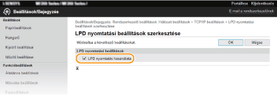 LPD nyomtatáshoz jelölje be ezt a jelölőnégyzetet. Ha nem használ LPD nyomtatást, akkor törölje a jelet a jelölőnégyzetből. [RAW nyomtatás használata]