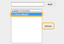 Pasirinkite MAC adresą ir spustelėkite [Delete].