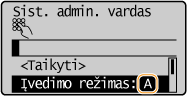 , jei norite perjungti įvedamo simbolio tipą. Šiuo metu pasirinktas simbolio tipas žymimas „A“, „a“ arba „12“ dalyje <Entry Mode>.