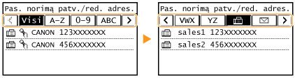 Galite keisti parametrus, pvz., keisti užregistruotą fakso numerį arba pavadinimą, adresato, užregistruoto kaip fakso numeris, tipą į el. pašto adresatą, kodinio rinkimo numerį ir pridėti arba naikinti adresatų grupes. Be to, galite naikinti adresatus arba grupes.