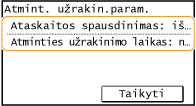 Jei norite spausdinti atmintyje saugomus gautus dokumentus, nustatykite <Atminties užrakinimo parametrai> reikšmę <Išjungta>. Spausdinami visi atmintyje esantys dokumentai.