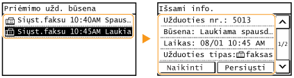 Pasirinkite <Užduoties būsena> ir pasirinkite dokumentą, kurio būseną norite patikrinti.