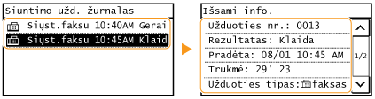 Kai nustatyta <Rodyti užduočių žurnalą> reikšmė <Išjungta>, ryšio žurnalų tikrinti negalite. <Rodyti užduočių žurnalą>