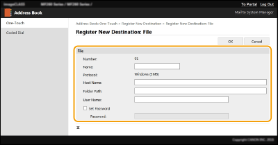 می توانید از رایانه برای ثبت مقصدها در Address Book دستگاه استفاده کنید و اطلاعات مقصدهای ثبت شده را ویرایش کنید. مقصد پوشه مشترک را در اینجا مشخص کنید.