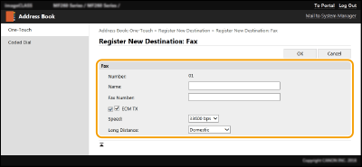 <Fax Settings>) از پانل عملیات مشخص کنید. با اینحال، تنظیمات انجام شده از <Addr. Book> برای تنظیمات دقیق مقصدهای ثبت شده در Address Book فعال می شوند.
