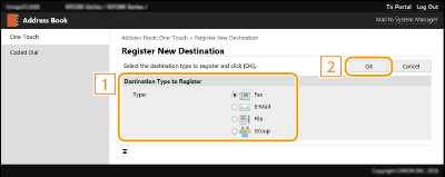 [Destination Type to Register] را انتخاب و روی [OK] کلیک کنید.