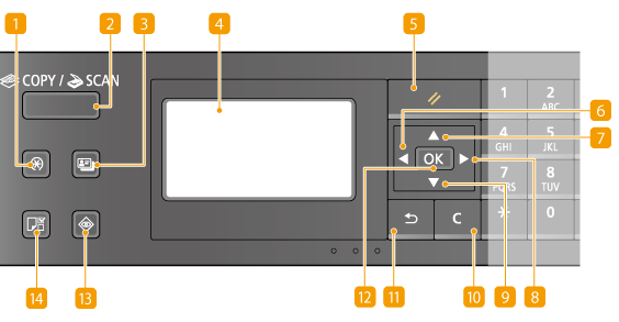 برای بررسی وضعیت چاپ یا فاکس، برای مشاهده تاریخچه استفاده یا برای مشاهده تنظیمات شبکه مانند آدرس IP دستگاه فشار دهید. همینطور می توانید وضعیت دستگاه مانند اندازه کاغذ و باقیمانده کارتریج تونر، سایر موارد یا اگر خطایی روی می دهد را نیز بررسی کنید.