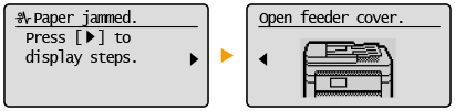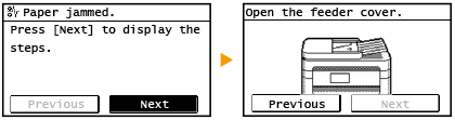 در مواردی که خطایی روی می دهد، دستورالعمل هایی برای نحوه پاسخ به خطا نشان داده می شود. برای حل مشکل، دستورالعمل های روی صفحه را دنبال کنید. صفحه ای که زمان گیر کردن کاغذ نشان داده می شود به عنوان مثال در زیر نشان داده شده است.